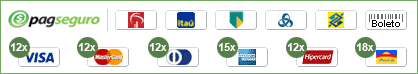 Aceitamos as bandeiras destacadas de cartões de credito.